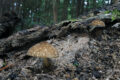 このポイントに数個、点在して発生していた。バックに写っている赤い玉はカメムシタケ。