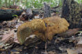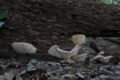地上生のキノコがほとんど見つからないため、北側斜面の倒木を見て回ることにしたが、倒木は少なく古いものが多かった。それでも丹念に探すといろいろ見つかり出し、本種も多くはなかったがいくつか確認できた。
