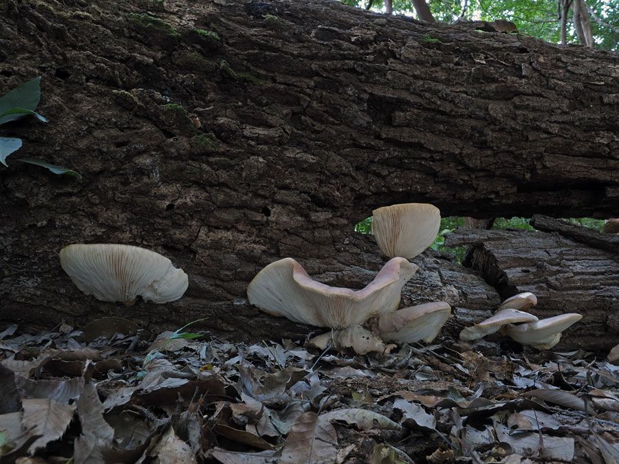 2025/11/3 静岡県三島市 Twitter Facebook はてブ Pocket LINE コピー 2025.11.03 もうこの時期なのでキノコの発生は期待できないと思いつつ、午後に少し自由な時間が取れたので、散歩のつもりで自宅裏山へ行って来た。 ツキヨタケ しばらく歩いたが、キノコは全く見つからず。ナラ枯れで倒れたクヌギが多いポイントを探すと立派なヒラタケが見つかった。時期的にもヒラタケで間違いないと思ったが、よくよく見ると本種のようだ。がっかり。 ツキヨタケの他にはホコリタケと不明種1種しか見つからず。ナラタケやクリタケに期待していたが1個も見つからなかった。