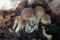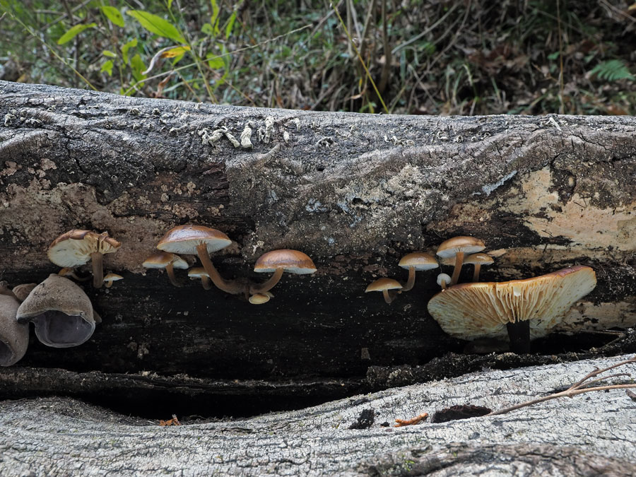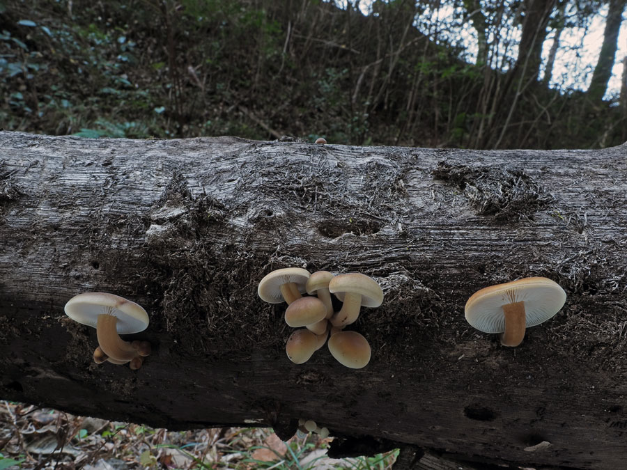 この倒木にはたくさん発生していたが、古い個体が多く、なんとか被写体になる箇所を選んで撮影。本種らしい姿を見せているが、やや汚い個体は取り除いて撮影したほうがよかったかもしれない。